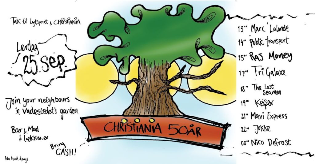 Se mere og tilmeld dig på Facebook event: fb.me/e/1JxhX1Q7Lfacebook.com/christiania.org – instagram: christiania.freetown