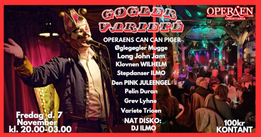 Derudover vil der være: Artister – Komik – Viser – Gøgl – Musik & Sang – samt Operaens Can Can-piger!