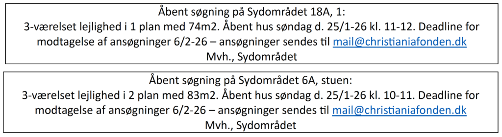 Her på siden finder du ledige boliger på Christiania.